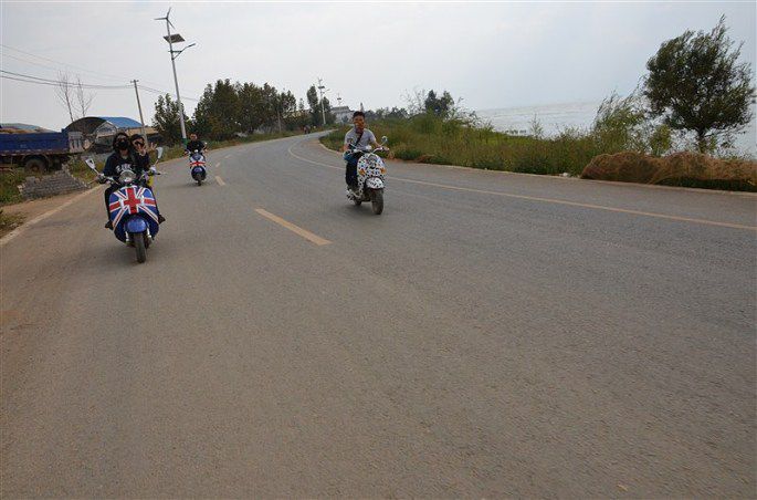 我们下午去附近租了几辆电动摩托车,一辆40元,女孩子一辆2个人,一人20元,在周边找了个餐馆吃饭,说实话真心的不是很好吃,点了几个小菜,还点了个酸菜鱼,味道怪怪的,一人22元