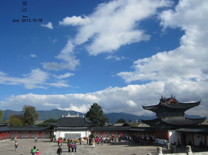 放好行李之后下午游木府,门票学生票30元一人,如果没有学生证年龄不超过24岁就跟那个售票员讲没有带学生证或者是身份证.里面的风景不错,从山顶可以看到整个丽江古城.....