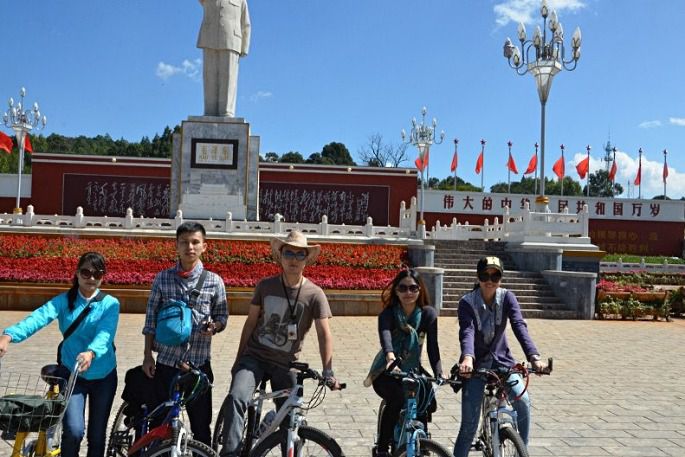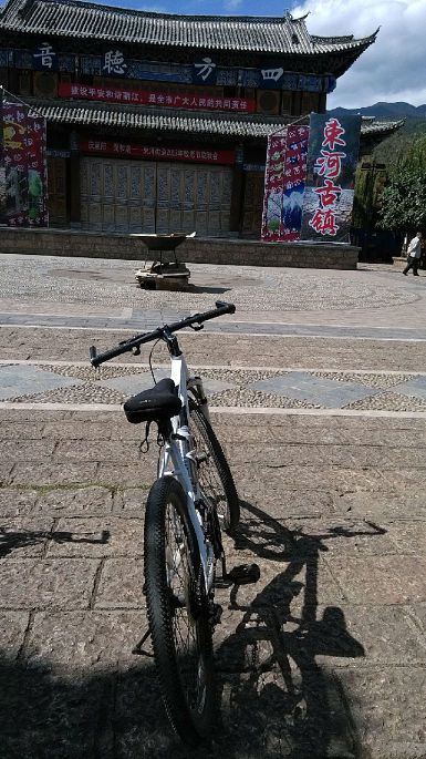 在丽江客栈古城睡到自然醒,早上吃个简单的吃个早餐,走到丽江大水车那里,不过很多人,我们去附近租了每人一辆自行车,骑车去涑河,被我们砍到了25元一辆车