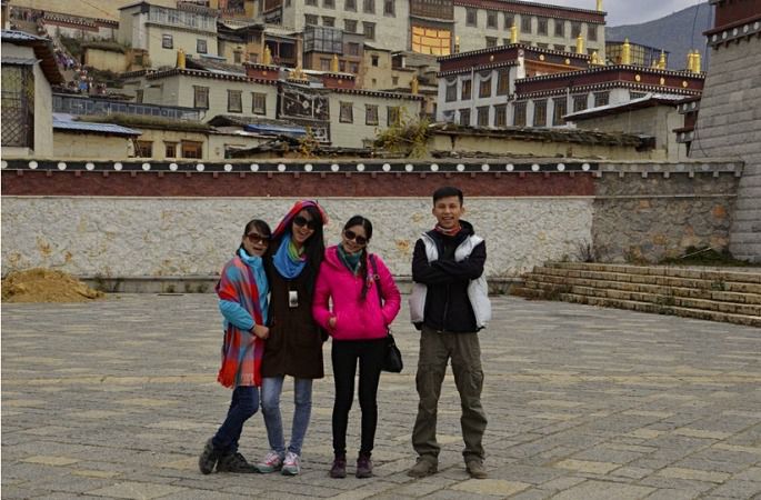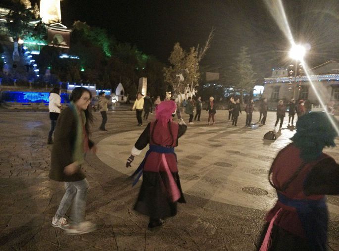 下午3点左右到达香格里拉,我们找了一家独克宗古城里面的“蓝田青年旅社”入住 环境不错,主要是比较干净,然后我们去了一个广场里的的寺庙,忘记叫什么名字了,床位40元一人.晚上我们找了一家火锅店里面的生意真火,排了很久才有位置,而且里面的招牌菜就只有一两个,很好吃,又很地道价格也很优惠,那个酸奶很好吃,跟外面的超市里卖的完全不一样,听老板 说是他自己做的,15元一份酸奶,晚餐45元一人,吃饱喝足后,去广场里跟少数民族跳藏舞
