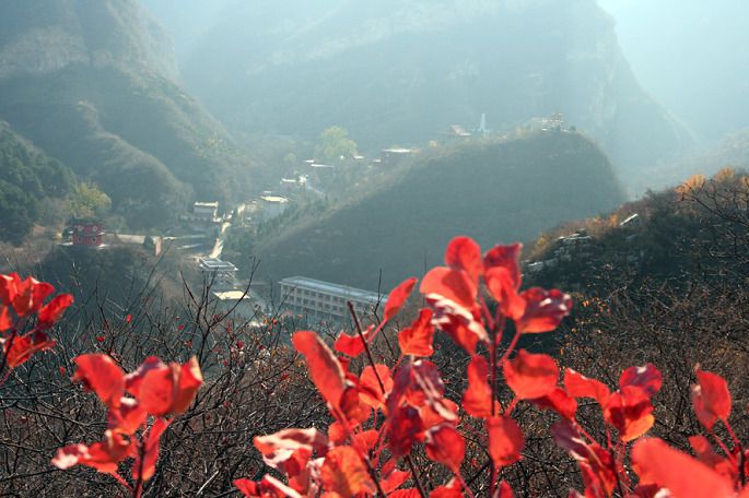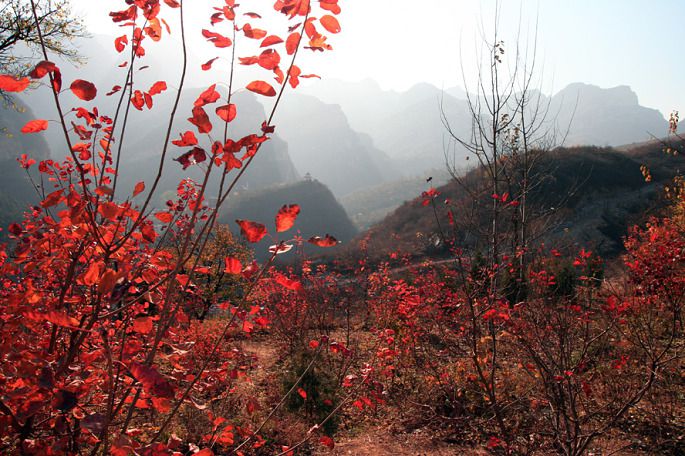 观赏红叶的最佳日期是“霜降”以后,如果此段时间内没有大风,观赏红叶的时间可延长到“立冬”,这一段也就是半个月至20天,所以观赏秋实要抓紧。真可谓:幽岚山层林尽染,坡峰岭栌叶赤红,美景流连。