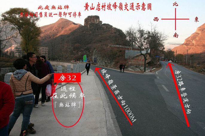 到此地的公交车只有“房32路”交通,返回市内的末班车是18点,到景区路口可能18点多。『坡峰岭红叶景区』没安公交车站牌,这不要紧,在马路边上招手即停。来时,只要能够上“房32路”就行(地铁房山线以贯通),上车提示一下售票员,去“坡峰岭景区”,到时他就会提醒你下车。下车后需徒步到景区售票口,不很远,能看到私家停车场。