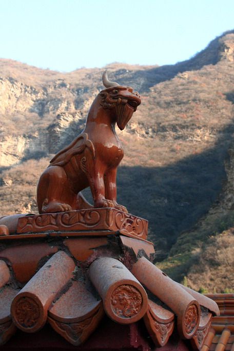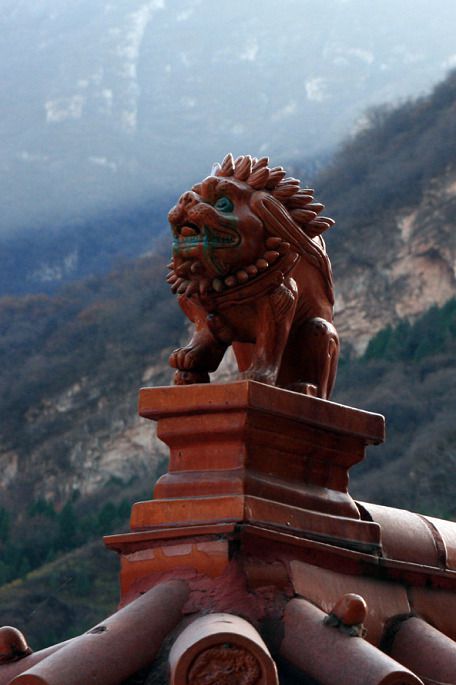 在红叶景区内就能看到该寺,但是到达不了,有几条山沟断壁栏断了奢望,还是出了景区再转向“乐师寺”省气力和时间(徒步10分钟的路程) 『这是寺庙中不知名的稳兽』