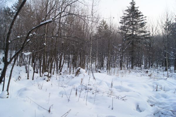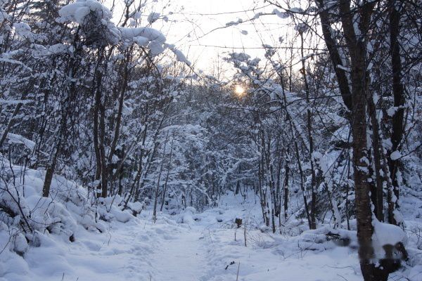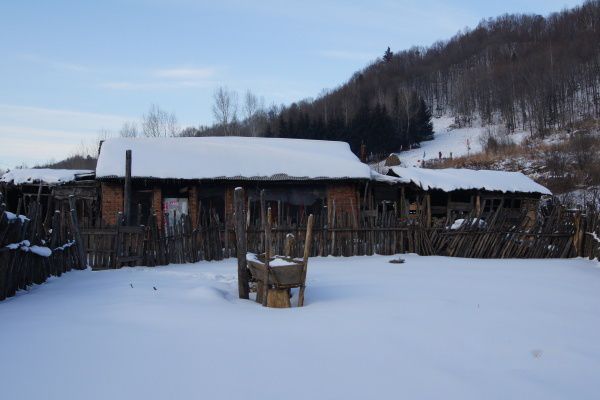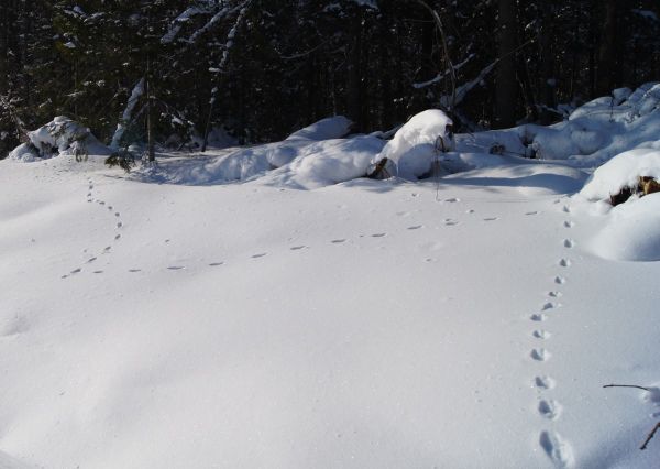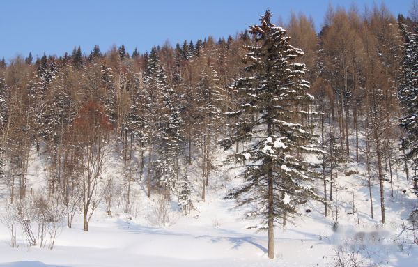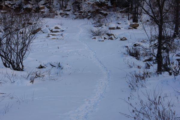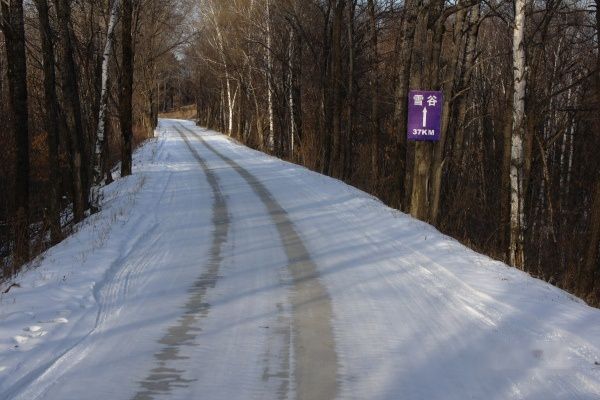 进山的路是在雪地上踩出来的,今年的雪小,山里的雪不是很厚。