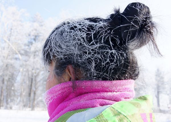 早饭后,穿上专门在哈尔滨买的雪地靴,带上饼干和水,轻装出发了(其他行李和一些体弱的旅友坐汽车直接去雪乡)。