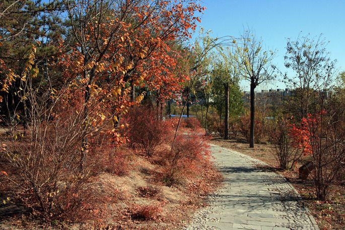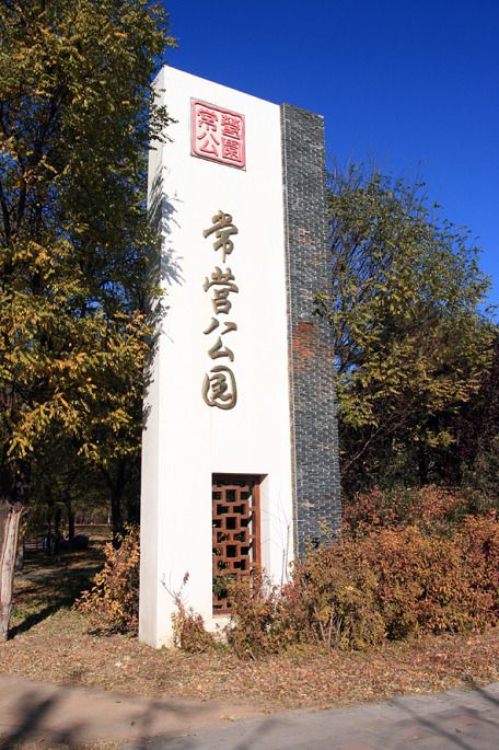 『常营公园』也是一处郊野公园(免费公园),位于朝阳区常营乡西北部,占地1114亩以种植林木为主要景观。其中有一片银杏林,号称“银杏林走廊”,约有千亩。即然是公园,也要按季节种植一些花草,铺曲径通幽和设亭栏休闲。