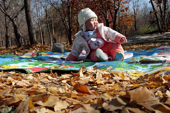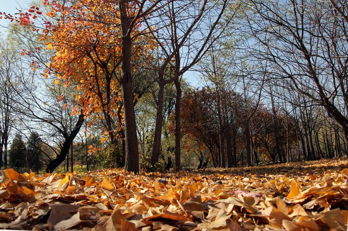 唯有遇到这个孩子我心里还有点安慰,孩子童真,她看叶子满用心呀。今年是拍不成银杏景啦,只好明年早点来吧。【交通路线:499快,499都行,(终点站)常营民族园下车,往回沿着马路西侧走60M,有一个公园便门即是。终点站上车有座位】