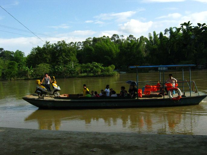 天色渐晚,真怕走进了荒山野岭,不过不久就看到了一座电站,叫红岩电站。过了电站,白水河拐了一道弯,水面逐渐宽阔,路边便是一座山村——红岩村,路边还有红岩小学。河边还有一座渡口,看渡船标识知道对面那村便是郎宫,也明白了这条公路叫天郎线的原因。问村民,知道对面也是一个风景区。但夕阳斜坠,不敢耽搁,看满眼风光,也只能匆匆拍上几张照片,继续上路。距离关岭还有6公里上坡山路要骑,怕今晚又要赶夜路了。