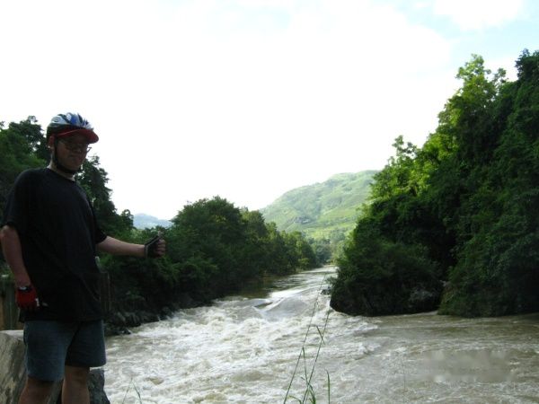 进入黄果树镇,就见到游人如织,大小车辆来往穿梭。不久,就看到了黄果树风景区的标志石牌坊。径直骑到白水河桥上,停车拍照,看地图,上游是陡坡塘风景区,因为时间关系,不得不放弃游览,直接沿黄天公路下行。因为公路和白水河之间被景区管理者砌起了一道高墙,沿途看不到白水河风景,当然也看不见那著名的黄果树瀑布,那是要圈起来卖钱的。