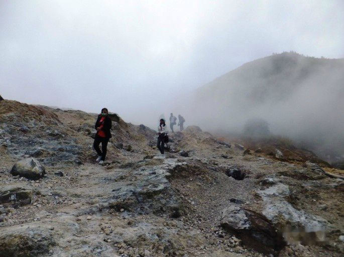 第一个景点下来是一个“温泉”。一个火山附近的天然大池子,像一锅烧开的水,而且烟雾滚滚,空气中满是硫磺味道。有不少印尼当地人也在参观。