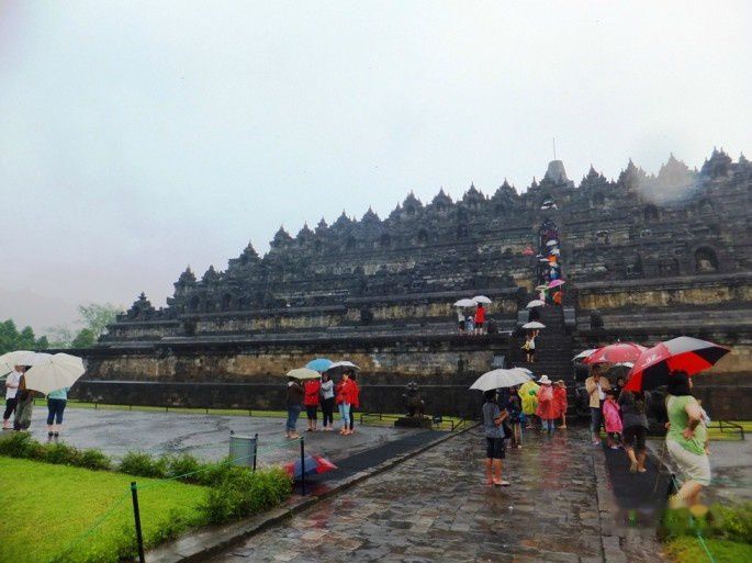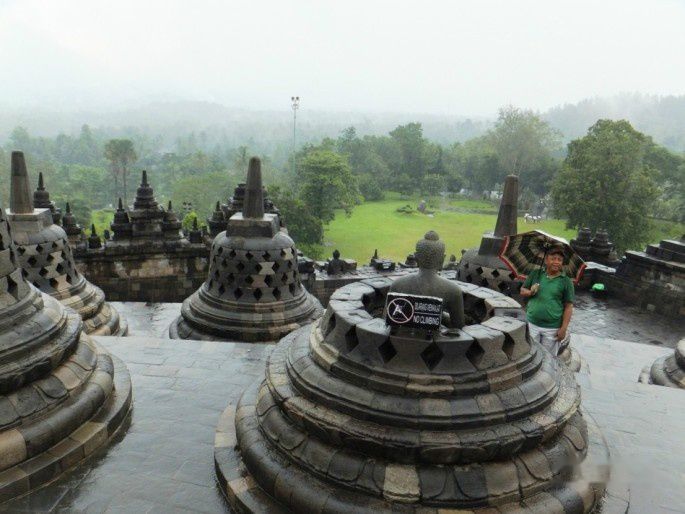 游完DIENG高原,往回开2个小时,就是这次来日惹的的主要目的地Borobudur了。外国人走VIP通道,还有咖啡喝,矿泉水拿,当然价格是本地人的20倍。门票15美元,本地人不到1美元(印尼人Rp 7000)。