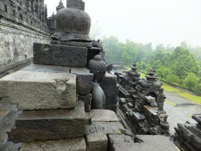 小百科:婆罗浮屠是世界上面积最大的佛教建筑遗迹,与中国的长城、印度的泰姬陵、柬埔寨的吴哥窟并称为古代东方四大奇迹,是世界文化遗产。