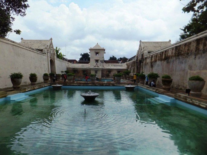 第二天休息到中午才出门,在宾馆前台拿了一张地图,走路先去了水城(Taman Sari),就是当年苏丹和妃子戏水的地方。