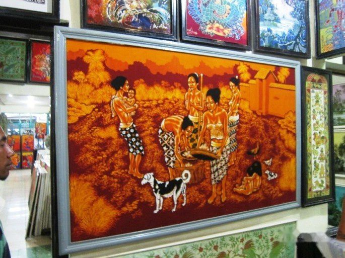 路上不断有人推荐我去Batik市场看,刚开始不知道什么东西,后来才知道是当地的传统手工艺:蜡染。就在我们的酒店附近,有一家比较有名的店了。里面卖的都是Batik的画。很多老外在看。我囊中羞涩,背包轻盈,所以看看就走啦。