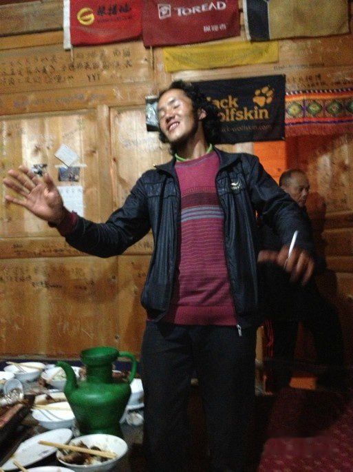 他叫尼玛(藏语太阳的意思)一个康巴藏族的小伙子,真心的帅!藏人的性格张嘴就唱,抬脚就跳。白天路途休息时打开汽车里的音乐,光膀秀锅庄,奔放的舞姿迷倒一大片。