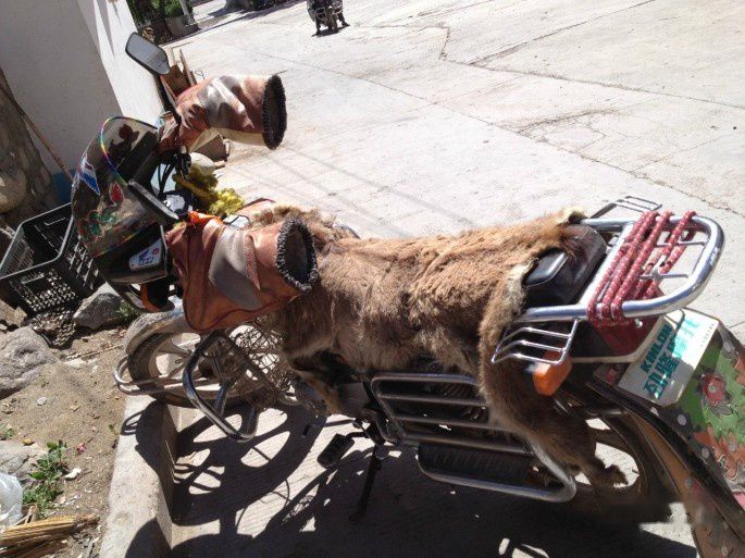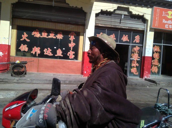 穿着氆氇长袍的摩托哥很威武 这摩托车很拉风