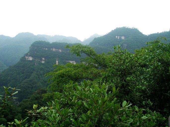 爬山伊始,拐进满是树林的山间小道,一股荫凉袭来,然而走没多久,却渐渐感觉闷热难耐,景区内没有上山缆车,游客也稀少。歇歇停停地大约二个多小时后,终于爬上了山。