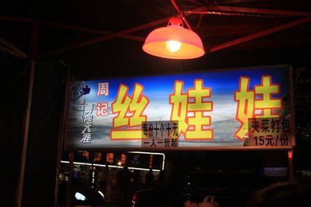 是schatz在网上找的餐厅,走进去一看乱糟糟的,2层楼大院,在一楼找了个安静角落,点了糖醋鱼,青椒牛柳和炒米粉。吃完后出来走到前面一眼望去都是大排档。 路过一家卖丝娃娃的档,听说这是本地的特色小吃,就座下来品尝。