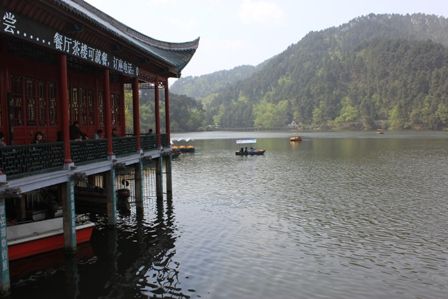 到了黔灵湖在临湖的茶室喝着茶,观赏湖景休息片刻。