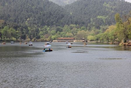 出了寺院往后山下去是黔灵湖。