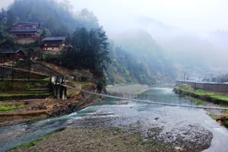 清晨起来,昨晚下过雨后,山寨还是雾茫茫的。要赶头班车回凯里。急着下山。