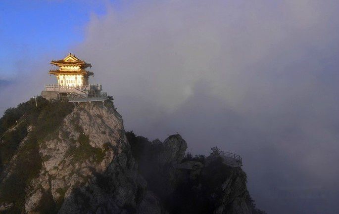 怀着“会当凌绝顶,一览众山小”的豪情和登高我为峰的喜悦,为数不多的几个人大叫着向老君庙疾奔而去,合影留念、向老子问安后拾级而下,穿过云海仙景去和滞留在路途中的人会合。