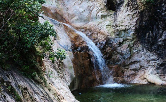 溯水而上,过翠竹林,越千年玉兰,走石桥,登铁梯,终于来到追梦谷的终点老君瀑。