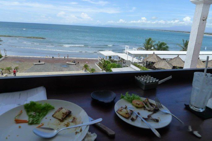 我们在靠近稻田的位置做下来,虽然没有争取到凉亭的座位,不过这里的景色也算不错了。这次巴厘岛之行,我的感觉是巴厘岛人把自然取景看的非常重要,所有的餐厅茶馆都想尽办法与景色相结合,尽量做到原生态的感觉,这也是我们这些在都市里憋了太久的人最想要的了。