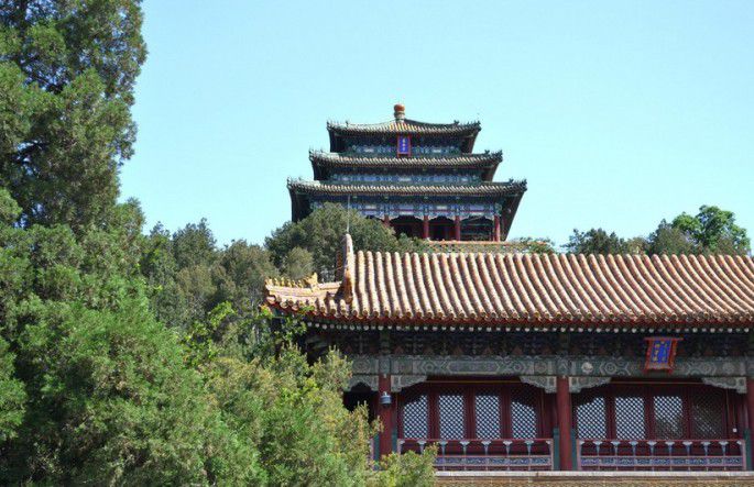 穿过了故宫来到景山,其实就是座人造山,因为皇帝一定要背山而坐。不过它是北京市区的制高点,爬上去能看到市区全景,还是值得一去的。在景山上俯瞰故宫,就像一个模型,再华丽的宫殿,终究都是过眼云烟。