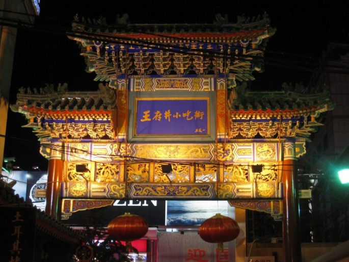 下了山,本来想去北海,但是因为穿着高跟鞋走累了,加上手机没电了,我们还是决定先回了宾馆,稍作休息,在王府井的小吃街吃了点东西。那里真是超级贵,而且还不怎么好吃。一串糖葫芦卖5块,后来我在前门看到只要1块的。。。填饱肚子冲完电出发去后海,在王府井坐103在美术馆换111,后海酒吧街的门就是一 条叫荷塘什么的牌坊,夜景真是非常不错,新天地相比要逊色多了。很喜欢一家叫sex and city的,如果不是爸妈在,我一定进去high一下~酒吧街不长,走了十几分钟就出来了,发现周围也没什么能逛的,于是就打道回府,早早休息,为第二天 爬长城储备体力。