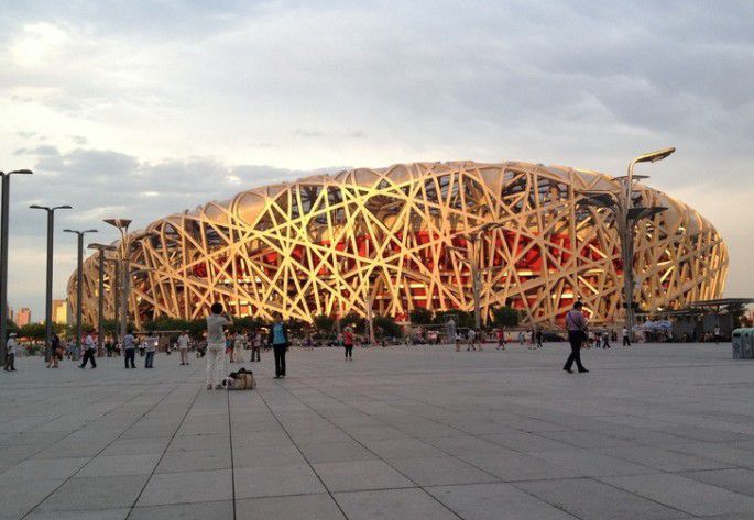 雨后的天空格外的清晰,斜阳照射下的鸟巢真是很漂亮。我之前一直觉得水立方有点像武宁路的家乐福,直到6点她开灯之后。只能用fancy来形容。广场上有很多小摊贩卖纪念品的,狠狠地砍价买点还是不错的说~