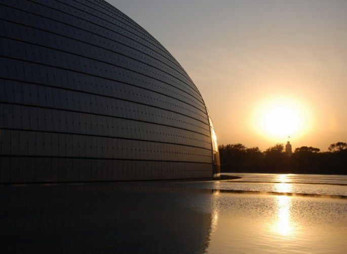 出颐和园乘了辆去前门的车,遇到个超拽的售票员,说到前门要2个多小时,车上的人都被他吓倒了,于是都在中途某站换地铁。下了地铁老爸已经走不动了,所以就 打算找个地方吃点东西,突然发现原来这里是清华园附近,餐厅里都是学生,留学生特别多,让我怀念起华师大的后门来。那家吃粥的地方味道不错,至少不是很重的北京口味,价格也还好,填饱肚子再坐地铁。13号线换2号线,让我发现了世上最远的换乘通道,走了大概有15分钟,上上下下四五趟楼梯,终于换到了2号 线,实在很同情需要每天换乘的上班族们。2号线在复兴门换1号线,因为时间还早,我们在天安门下车,想去看国家大剧院。没想到晚上没有开灯,只有一闪一闪的小灯,和航拍看到的效果差太多,不过浮在水面上的创意的确很不错得说~BTW,天安门广场的夜景实在是很漂亮,总体来说,北京的夜景跟上海有的一拼。