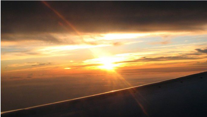 1个小时后机场巴士来到了2号航站楼(一定要搞搞清楚自己的航空公司,因为首都机场有3个航站楼),候机厅不开空调,好热。正式告别北京,在飞机上又看了次日落哈哈。