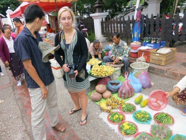 清晨,我早起去看僧人接受虔诚信徒的布施;到农贸市场赶早市,了解当地的生活水平,购买老挝土特产。
