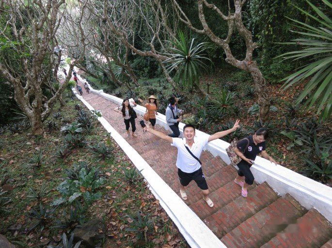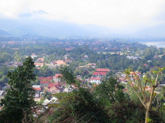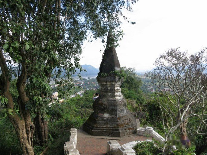 我们拾级而上328步到达普西山顶,一览琅勃拉邦两江夹持、群山环绕的美景。