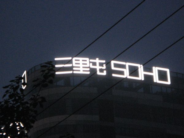 秀水街坐2站路就到三里屯了。天色渐暗,老黄推荐我们去三里屯Village。我们起初不知道这个Village是什么样的,不知不觉已经走入它的范围。它是一群有艺术感的建筑,有一搭没一搭地连接起来的一个商场。里面不是一个个柜台,而是一个个专卖店,特别大,燕子很喜欢。我问保安,这是什么地方,保安告诉我是什么路和什么路口,没有告诉我这就是Village。后来下雨了,我想找个地方避雨吃饭,一看商场里的路标,才恍然大悟,这就是所谓的Village。