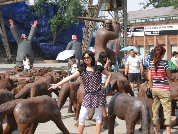 第一站,798艺术区。第一次听说这个地方,是在浏览朋友的朋友的空间里。这一类区域现在有很多,就是废弃厂房,被艺术家们改造成画廊、做些雕塑、画些墙画等,还有些特色小店。我们一进去,拍了些照,就被小店吸引了。798实在很大,走了很久才逛了1/4。太阳很大很烈,我们决定退到室内,坐公交车再换地图就到了第二站。