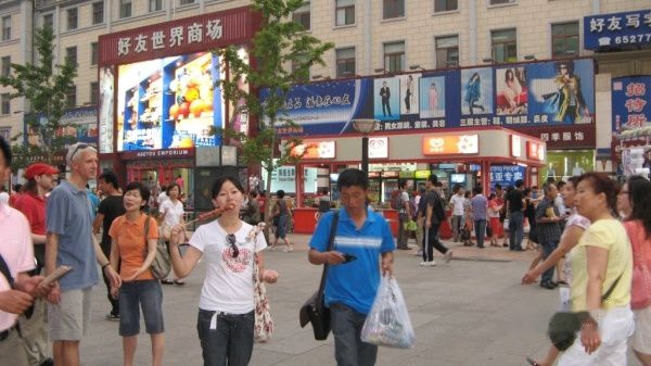回来仍是919,在德胜门附近的地铁坐到了王府井。这条步行街,就是更宽了些,周边的商场更气派了些,相比前门大栅栏,更现代了些。兴冲冲地买了根号称现做的冰糖葫芦(6元)。说来难以置信,生平第一次吃到冰糖葫芦。小时候,倒不是没有条件,就是不感兴趣。果然8颗,我勉强吃了2颗,其余地添了一遍,就扔了。我自问很少浪费粮食,一直很节约,但我现在学会有些东西不喜欢就不要勉强,要拿得起,放得下。放下冰糖葫芦,很是轻松,又买了些零食特产。
