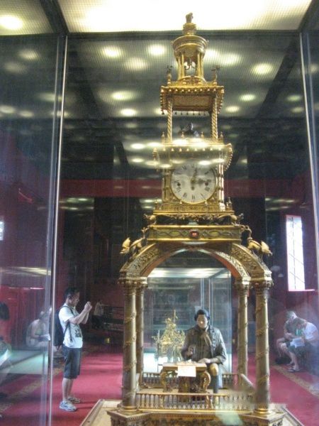 故宫很大,但是很多殿都差不多,所以珍宝馆和钟表馆各10元,一定要买,才能看到不一样的。尤其是珍宝馆,包括了好大一块地方,九龙壁、畅音阁、乾隆花园、珍妃井都被划进去了。钟表馆就一间屋子,这些钟表都很漂亮,大部分都是英、法、瑞等各国造的,要是都能走就好了。有两个很吸引人,一个钟,下面有个假人,能写字的。还有一个铜壶滴漏,有房子那么高,是清宫造办处造的。