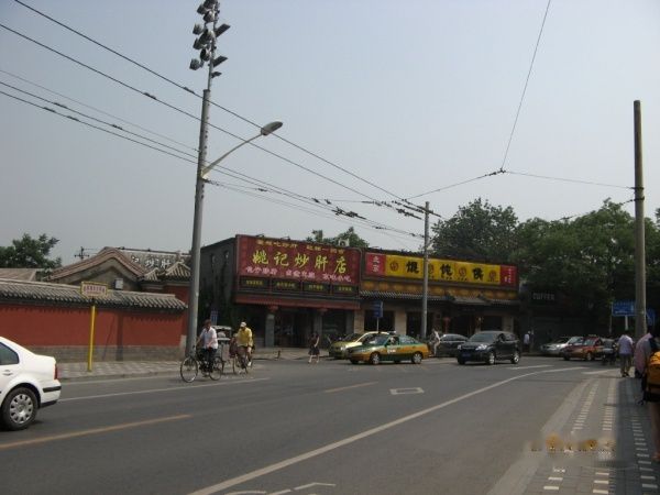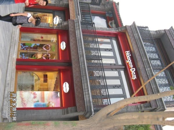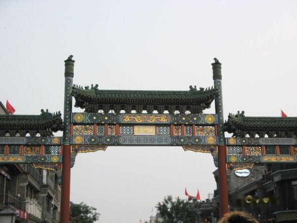 前门大栅栏:一条新修的步行街。百年老店和现代名店都用了古色古香的门面。比王府井步行街要短些。吃的、喝的、穿的、银行、特产、旅游纪念品都有。我们在都一处吃了烧卖。在北京特产店,买了些麻花、牛皮糖之类的特产。还买了两只发簪和发圈,很闪,10元一个。燕子想在星巴克喝点什么,我不允许,理由是她不能碰甜的东西。其实心里想着去后海。