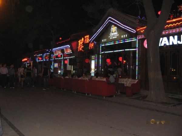 后海以酒吧著称,这些酒吧都沿着湖边,一家一家紧挨着,可以坐在外面,很凉快。人很多,几乎没有位子。有热闹的,也有安静的,各取所需。外面找了家相对安静的飞鱼酒吧。后海白天也不错,可以在河中游船,小船上还有美女弹琵琶。再去北京的理由之三,就是再到后海瞧瞧。