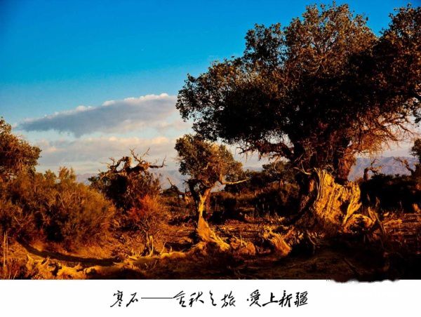 这是一片原始胡杨林。虽然历经风雨沧桑,却仍然保持着远古的原始风貌。走进胡杨林,扑面而来是一种原始的气息,会让你感受到一种原始生命的律动。那磅礴向上的气势,向你展示着不屈不挠的精神,那鬼斧神工般的形态,更使你感到大自然的壮美。千百年来,它们以顽强的意志抗击着沙漠的侵蚀。让人惊叹的是,这些铁骨铮铮的树干,形状千姿百态,有的似鲲鹏展翅,有的象骏马扬蹄,还有的如纤纤少女。简直就是一座天然艺术宫殿。有诗写道:“矮如龙蛇数变形,蹲如熊虎踞高岗。嬉如神狐九尾,狞如夜叉牙爪张。”胡杨林之美,由此诗可略见一斑。(以上节选自百度)