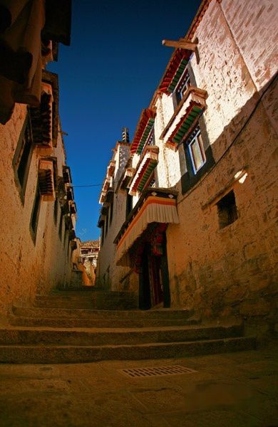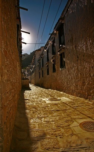 ↑哲蚌寺的静静小路,只有太阳还在坚守着