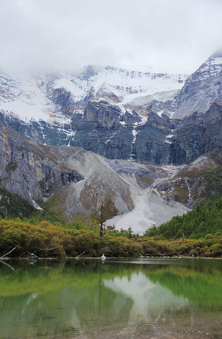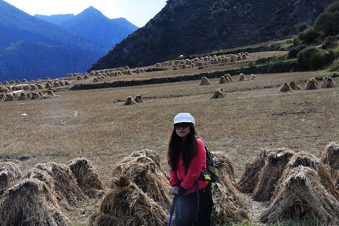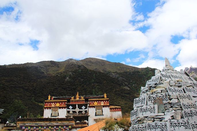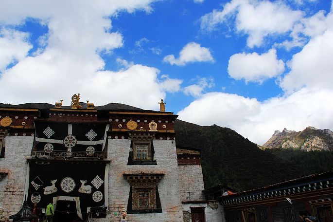 稻城县去亚丁村道路不是很远,也是翻山越岭,路过香格里拉乡(与云南的香格里拉争名,云南胜了)。亚丁村在过去是很少有人来的,自从有驴友拍的美景,吸引了很多摄影爱好者,这里也慢慢成为旅游热点了,亚丁村每天卖票5050张,一般网上订票,我们去的那天卖出的票不到1000张,可见游客不多。当地的政府为了发展当地旅游,不许外地车进入,进村需要坐当地的观光车。门票150元+观光车120元。观光车也是行走在山间的路上,外面景色很壮观,景色在你看到的下面,宽广有层次,在阳光下变化着色彩。记得坐车要在前面,因为要开1小时,搞不好晕车。到住处放下行李,我们就直奔珍珠海、冲古寺。我先去珍珠海,珍珠海的后面是雪山,下面是碧绿的湖泊,倒印下来是仙境,因为海拔高,所以往上走比较消耗体力,一路上都是四面八方来的游客,相互勉励、相互鼓劲,相互照顾,因为时间充足,走走歇歇,我们用了近两小时。看到珍珠海,我突然想起朱自清写的那篇绿了,形容珍珠海的绿,用在这里十分恰当,她还多了印在湖中美丽的雪山。返回去了冲古寺,这个古寺在阳光下闪闪发光,像个老者,安宁诉说着千年的历史,我忍不住沉思,倾听着他的叙说,感受着他的孤独。从冲古寺回拉丁村,有观光车,旅友们要记住了,不要坐回亚丁村的车,直接坐去香格里拉的车,半途下。因为我们住的地方离亚丁村下车点有段距离,在这个高原上坡行走,耗体力,能保存要好好保存体力,能少走几步都觉得幸福。生活在这里藏民淳朴、安逸,路上,看着草棵里、道路旁,人们嗮着太阳,磕着瓜子,拉着家常。晚上的住宿是最艰苦的一个晚上,大通铺,10人。隔着帘,外面还有人。高反继续在一些人身上反映着,我似乎好了,于是去了藏民的厨房,喝着酥油茶、青稞饼,和来自其它地方的驴友谈着感受、路程。因为身体舒服,也能吃,真的感觉很好,深深感触,到哪里都需要一个好身体,有了好身体,一切才有趣。