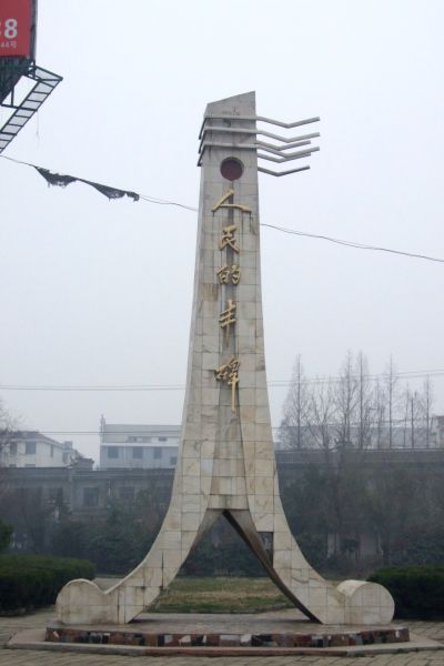 出了汽车站,首先看见一个纪念碑,三轮车师傅告诉我们,纪念碑最上面几个横线,就是当年洪水水位。镇里很过古建筑都在那时倒塌了。我们遗憾之余,把纪念碑拍了下来。