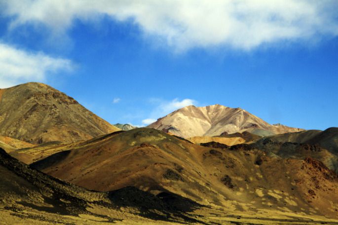 与2011年不同的是通往斑公错的道路在施工,路上的浮土很厚,如果走在路的下方,浮土可以淹没车轮,我看到一对上海去旅游的夫妻,开着车陷在浮土中动惮不得,有好心的过路车帮忙拖车,结果将车子的前盖整个拽了下去,无奈结束行程去了狮泉河的修理厂。由于公路伴着斑公错前行,灰土一直延伸到湖边,湖畔的植被破坏严重。