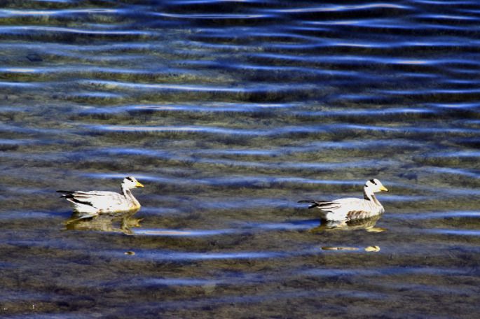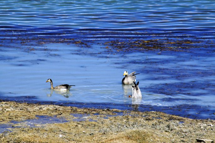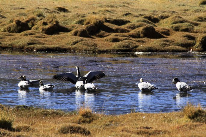 途中在一片沼泽湿地里看到一群斑头雁,这是在西藏最容易看到的一种水鸟,也是最为藏族人所熟知的鸟,藏族人管斑头雁叫白鸭,在西藏没有比斑头雁长得更白的野鸭了。藏族人喜爱并保护它们,因为鸟类不会与他们的牛羊争夺草场。