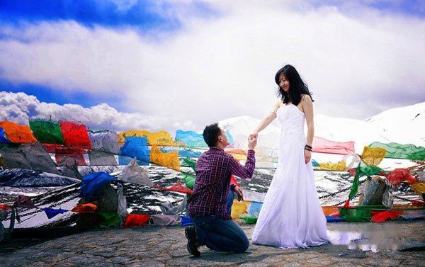 海拔5100的米拉山口很多人适应不了高反,这里提示下,药店里,5块钱的葡萄糖带点,敲了,泡温水里喝。或者提前喝;在米拉山口,帮一起来的朋友拍了一点求婚照。