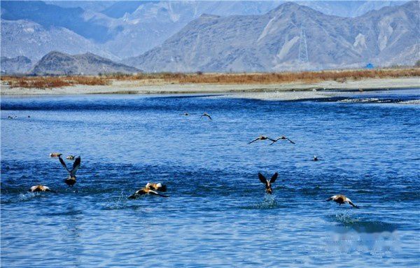 扎寺伦布寺我足足拍摄了5个小时,中午出来,一路东去,回拉萨。中午又是司机安排的吃饭,都是川菜馆,随便吃点。 下午到了拉萨河边,看到成群的鸭子,忍不住喊司机停车,又拍了一组照片。