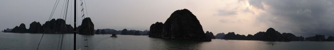 越南沒有太大興趣,祗對下龍灣有些憧憬,因有事回港順經Ho Chi Minh City之便到下龍灣一遊,此情此景,親臨才能感應地質變化之奇妙與震撼,桂林山水甲天下的名句相信很早已成過去,更不可說陽朔山水甲桂林了,何解?原因 是有山沒有水,很多年前第一次到桂林的時候,遊灕江可於桂林市登船繼水路直達陽朔登岸,但三年前舊地重遊,景色已是全非,祗維持喀斯特地貌秀麗依然的山 峯,(實情接近桂林市的一大段頗長江邊山體已開發成商業化區域)因 水流量不足,現在如要遊灕江首先要乘車一小時先到另外一碼頭登船,到陽朔之前要在興坪登岸,(以前興坪亦是很好的風景名勝,唉!現今不提也罷)再轉乘汽車 才可到陽朔,皆因頭尾水流太小,祗有縮短航道以汽車代替,加上環保意識滯後不前,河道淤塞,綜觀下龍灣整個景區都在海灣之內,山峯挺拔,千姿百態,一望無際 的峯巒插落汪洋大海之中,而且環保很好,碧水漣漣,峯嶺自然,我們就在這獨特美好很有詩情畫意山與水之間渡過了一個難忘之夜。